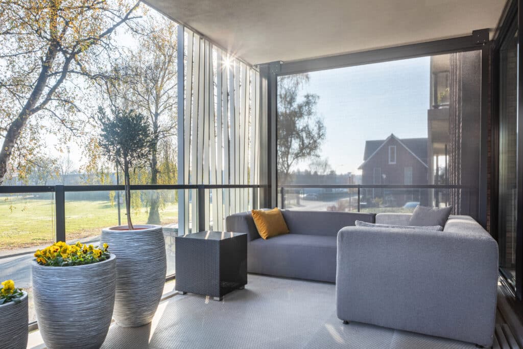 Een project dat de meerwaarde van zonwering voor bouwpartners duidelijk bewijst, is het onlangs opgeleverde appartementencomplex Park Marialust Remeha in Apeldoorn. Hierbij komt de toegevoegde waarde van zonwering heel mooi aan het licht, zonder dat daarbij ingrijpende bouwkundige aanpassingen nodig waren. Zo zijn voor de grote raampartijen van de appartementen screens van Roma geplaatst die het zonlicht in elk jaargetijde afdoende weren en het interieur van het appartement te allen tijde op een aangename temperatuur houden. Daarnaast werd voor de balkons gekozen voor een oplossing met een strak staand, vrijstaand screen dat zich bij sommige appartementen uitstrekt tot een breedte van maar liefst 6 meter. Dit zorgt er niet alleen voor dat de bewoners op het balkon optimaal zijn beschermd tegen zon en wind, maar hierdoor wordt tevens de esthetiek van het gebouw versterkt. Deze combinatie van functionaliteit en design bewijst dat zonwering meer biedt dan alleen praktische voordelen.